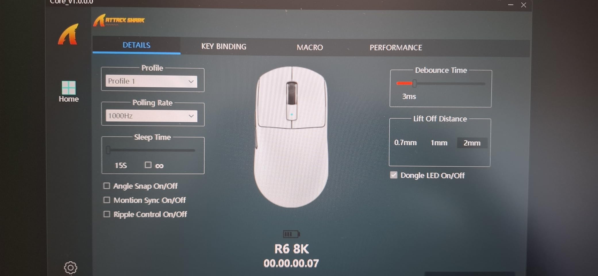 Self-developed SMART SPEED WIRELESS technology, providing faster data transmission and lower click delay. The wireless transmission technology only requires a traditional Nano receiver to have an 8000Hz wireless rate of return, making the cursor movement trajectory more precise and the control more precise. , fast movement is smoother.